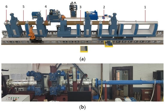 As shown in Figure 1a, 1 is the push rod chamber. The push rod opens the docking chamber 3 which is the device for transporting the core from the deep Earth, grabs the core, pulls it out of the docking chamber, and transfers it between chambers. Moreover, 2 is the storage chamber used for temporary storage of the core; 4 is the non-contact test chamber for acoustic and electromagnetic tests of the core; 5 is the preparation chamber for core sample preparation; 6 is the pressure test chamber for core samples. The chambers are connected through high pressure flat gate valves.
