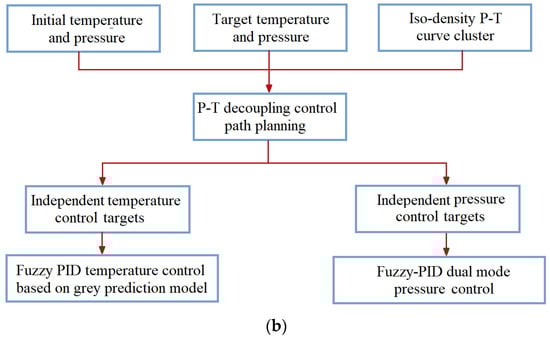 The temperature and pressure decoupling control system; (a) the structure of the temperature and pressure decoupling control system; (b) the decoupling control flow of temperature and pressure.
