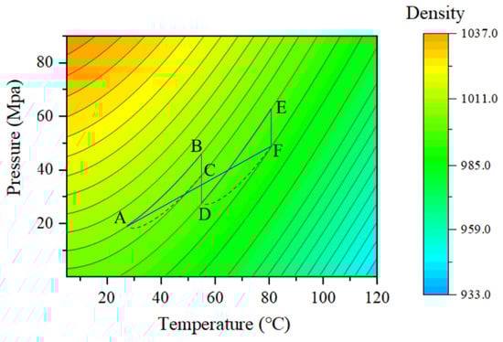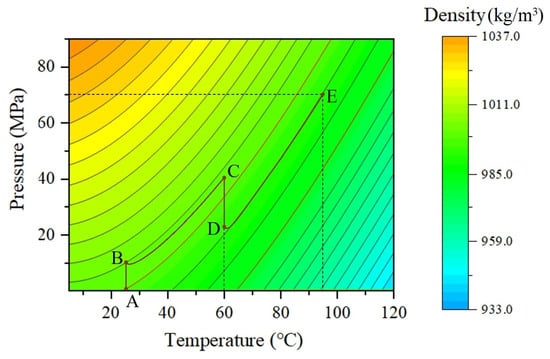In the process of initial environment reconstruction, the water in the storage chamber was heated from 25 °C and 0.1 MPa to 95 °C and 70 MPa. As shown in Figure 16, the decoupling control path ABCDE consists of four steps: