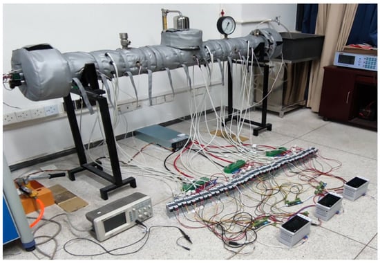 In the heating experiment, the silicone heating tapes were wound outside the storage chamber and covered with insulating cotton for heat insulation, as shown in Figure 14. The power supply was DC 24 V for each heating group. The heating power was 835 W for each two groups. Each heating group could be powered on or off by a solid-state relay. Five PT100 temperature sensors were mounted on the positions MP1~MP5 as shown in Figure 9a.