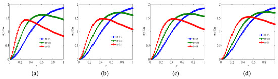 where r is the tolerance factor or filtering noise, d represents the length of data comparison, and the value calculated from is the i-th block of a sequence of numbers. Here, the analysis of the randomness of the data series obtained from the DFSCM (8) for and is performed for different tolerance values r between for a fixed value of . The calculated values of approximate entropy are plotted as 2D plots in Figure 5 with values tabulated in Table 1. The observations from the simulations imply that the higher the value of entropy, the greater the randomness of the data series, and lower values explain the predictive nature of the time series considered for study. In order to gain a detailed insight into the approximate entropy results, we presented the results for different lengths of data, such as The variation in the values explains the choice of the tolerance factor for a better illustration of the complexity of the proposed DFSCM.