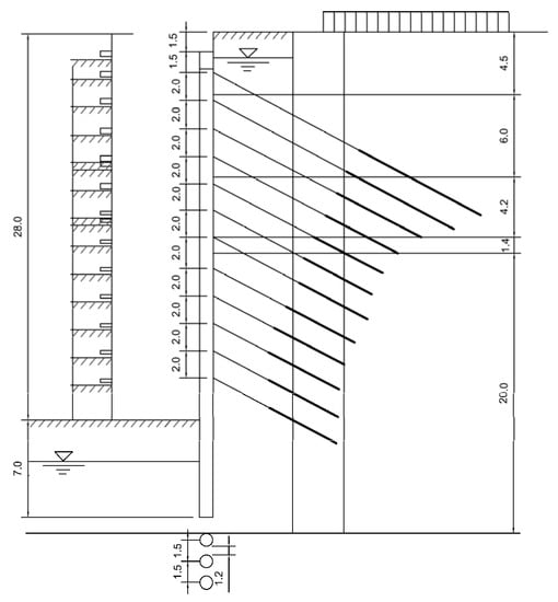 - Liu, C.Q. Spoke Method of Soil-Nail Bracing Structure and Its Optimization. Master’s Thesis, Xi’an University of Architecture and Technology, Xi’an, China, 2006. [Google Scholar]