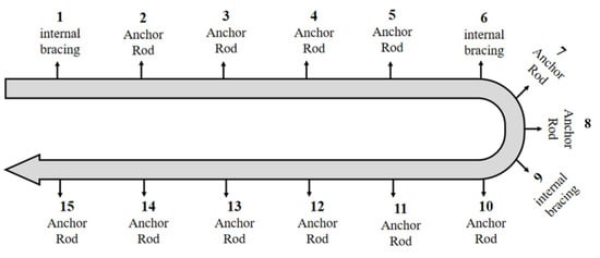 | Number | Support Anchor Type | Horizontal Spacing (m) | Vertical Spacing (m) | Angle of Incidence (°) | Overall Length (m) | Length of Anchorage Section (m) |