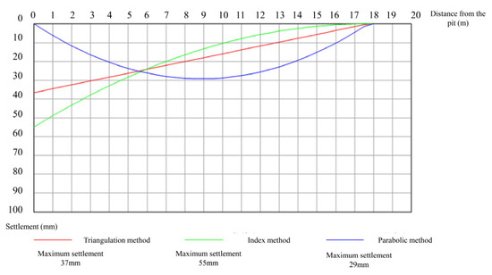 - Computer-aided software is used to design the supporting structure of the deep foundation pit. The maximum settlement of the foundation pit is 55 mm, which is less than 0.2% of the depth of the foundation pit (56 mm). The maximum horizontal displacement of the foundation pit is 33.94 mm, which is less than 0.3% of the depth of the foundation pit (84 mm). The maximum shear force of the supporting pile is 1341.8 kN, and the maximum internal force of the anchor rod is 1295.88 kN;