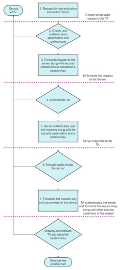 - Turkanović, M.; Brumen, B.; Hölbl, M. A novel user authentication and key agreement scheme for heterogeneous ad hoc wireless sensor networks, based on the Internet of Things notion. Ad Hoc Netw. 2014, 20, 96–112. [Google Scholar] [CrossRef]