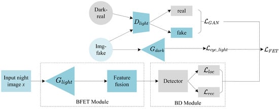The BFET module loss consists of the adversarial loss () and the cyclic consistency loss (), expressed by the following equation: