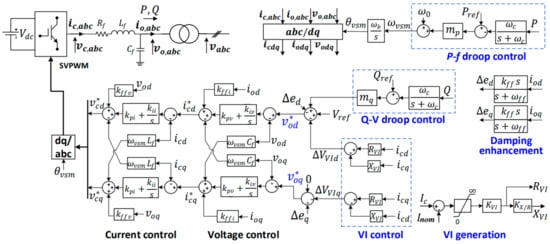 | The generated d- and q-axis voltage of the virtual impedance current-limiting control which are added to the outer loop voltage reference | |