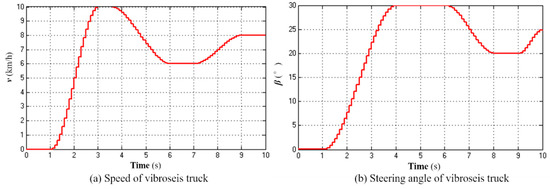 Simulation signal of the vibroseis truck. (a) Speed, (b) steering angle.