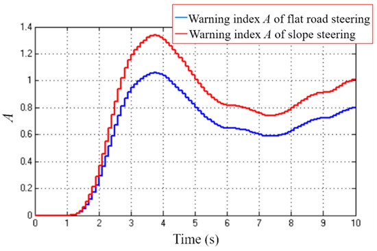 Comparison of the warning index A between flat-road steering and slope steering.