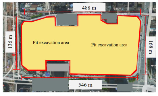 - Huang, M.; Liu, X.R.; Zhang, N.Y.; Shen, Q.W. Calculation of foundation pit deformation caused by deep excavation considering influence of loading and unloading. J. Cent. South Univ. 2017, 24, 2164–2171. [Google Scholar] [CrossRef]