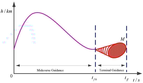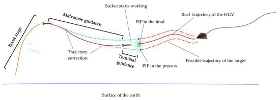 2]. However, factors such as the detection accuracy, prediction accuracy of the target trajectory, and target avoidance maneuver may prevent the defense system from determining the final PIP at one time. There will be more than one continuously updated PIP during the interceptor’s flight, and the interceptor has to make trajectory corrections according to the updated PIPs. As shown in