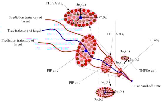 It can be seen from the above analysis that the dynamic updating of the THPEA is mainly reflected in the variances , and of the target position distribution on the , , and axes. In practice, the variance of the target’s position distribution is related to the target maneuvering mode, trajectory prediction algorithm, and other factors, and its change rule is only applicable for specific targets.