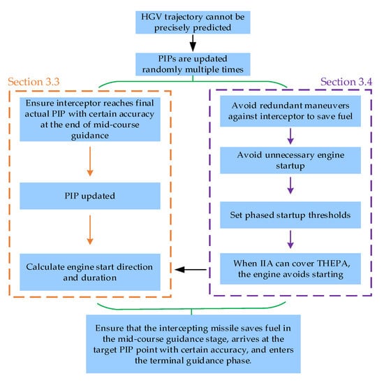 The cover instant of the IIA to the THPEA is regarded as the stage switching point. By setting the start-up threshold in stages, the interceptor can complete the large deviation correction before the stage switching point, and avoid the frequent start-up in the later stage, which can reach the final PIP based on effective fuel saving.