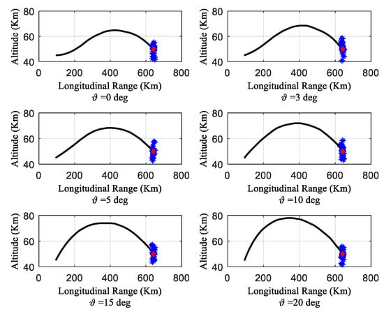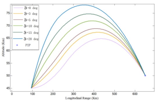 Table 1 shows that the PIP can be reached with high accuracy under different initial trajectory inclination angles. At the same time, in