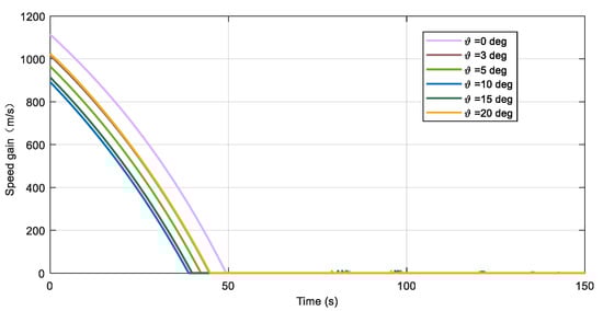 Figure 10. This is caused by the interceptor’s declining flight altitude and increased aerodynamic effects. Although some adjustments are necessary, they are minor. It is necessary to adjust the required velocity, but the adjustment is only a small amount. Therefore, it can be concluded that the guidance of velocity gain effectively resolves the aforementioned issue.