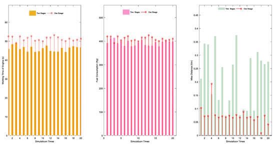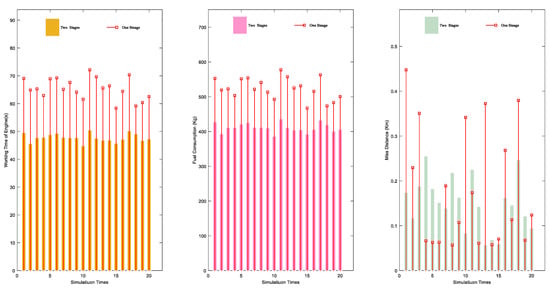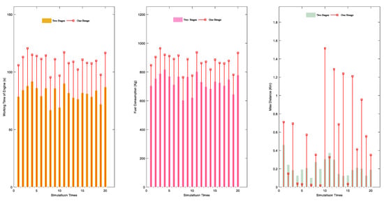 Figure 15 show the total engine start-up time, miss distance, and fuel consumption of the interceptor when the two methods conduct 20 Monte Carlo simulations, respectively. The initial conditions and the updated position coordinates of PIPs are identical for both methods.