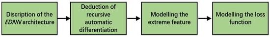 For similar physical processes, the functions modelling the physical quantities varying with time and space have the same form. Additionally, the numbers of the extreme points of those functions and their derivatives are confined in a certain range. Therefore, a novel neural network that introduces the extreme points distribution as constraints was proposed in order to acquire higher derivatives conforming to physical trends. The outline of building the EDNN is shown in Figure 1.