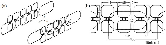 The 8-shaped coil is formed by connecting two coils in series, both of which are fed by the same magnetic field source, which is electrically isolated from any other element in the system. The operating principle is that the counter electromotive force generated by the upper loop (1) opposes that produced by the lower loop (2); hence, they are connected in reverse bias. The advantage is the absence of electrical current and power loss when the magnetic field source is centered relative to the coils. The 8-shaped coils are mounted vertically on both sides of a U-shaped track. This topology is known for its high lift–drag ratio, indicating high propulsion efficiency in the train [13]. An electric current is induced in the ground coil when a magnetic source passes below its center, generating the levitation force to balance the train’s weight.