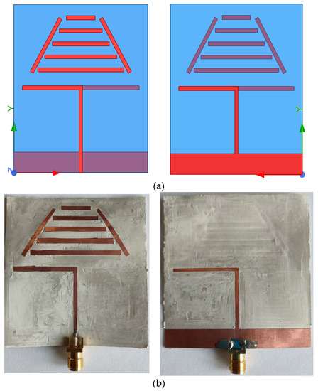 There are a lot of domains in which planar antennas are used, such as biomedical applications [1], wireless local area network (WLAN) applications [2,3], monitoring changes of the dielectric constant of the atmosphere caused by the presence of pollution [4], microwave sensors to evaluate the dielectric characteristics of different types of materials [5], thermoelectric sensors [6], mapping of terrain, and many others.
