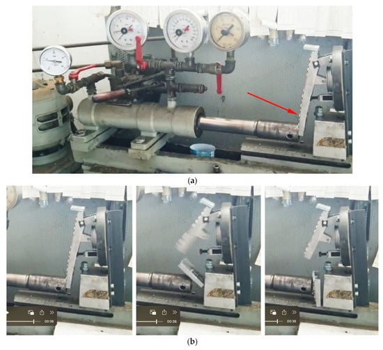 Apart from the calculations carried out in Ansys Explicit Dynamics, the experimental tests were arranged as well. The principal scheme of the experimental setup (Figure 15) explains its mechanism of work.