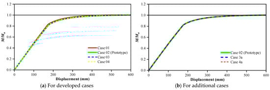 The moment ratio-displacement curve for cases.