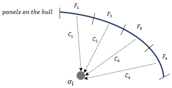 is determined as the linear summation of stress per panel as Equation (17). is the number of panels that influence the stress at the target point.