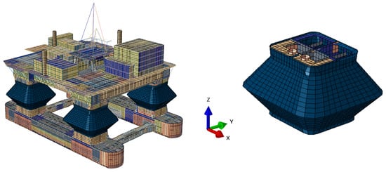 This study focused on a semi-submersible drilling rig installed in an ice-covered area as shown in Figure 8. To prepare for long-term ice loads, a specially designed structure was applied in the ice belt zone to mitigate the impact of the ice loading. The detailed dimensions of the structure are presented in Table 2.