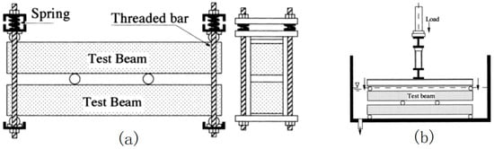 The effect of dynamic loading on the fatigue degradation of the RC was considerably greater than that of static loading. Ahn et al. [25] used the four-point static and dynamic deflection loading method in Figure 2 and obtained the conclusion that, compared with RC beams subjected to a static load, RC beams subjected to a dynamic load have a faster rate of corrosion of the reinforcement caused by Cl− intrusion, as well as a faster decrease in concrete load-carrying capacity by simulating the degree of corrosion of the reinforcement in the tidal zone of offshore structures under the combined effect of four-point bending fatigue load and an artificial seawater environment. Wu et al. [26] conducted an experimental study on the fatigue performance and Cl− permeability of RC beams and found that the fatigue load was more likely to cause Cl− to enter into the concrete than static loads.