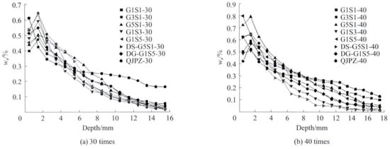 Transport properties of Cl− in concrete under different wet and dry regimes. (a) 30 times. (b) 40 times [51].