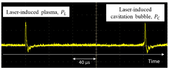 Shockwave signal from laser-induced plasma and the collapse of the laser-induced cavitation bubble from a PVDF gauge sensor in glycerol. Reprinted from [42] with permission from Japan Laser Processing Society.