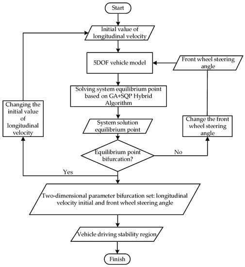 Based on the above definition, the solution method for the driving stability region proposed in this paper is shown in Figure 3 [29].
