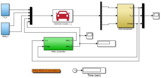 The co-simulation structure scheme of the driving stability region of the vehicle with 4WS.