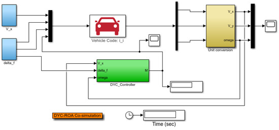 The DYC and 4WS are able to expand the range of the driving stability region of vehicle model without a control strategy. The effectiveness of the extended driving stability regions will be verified in this section. A vehicle model is established in the CarSim, and the controller is built in the MATLAB/Simulink. The dynamic stability of vehicles under different driving control inputs is analyzed using the co-simulation method. The control effect is analyzed using the driving stability range.