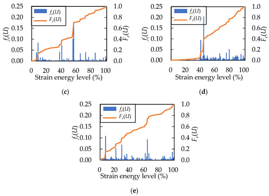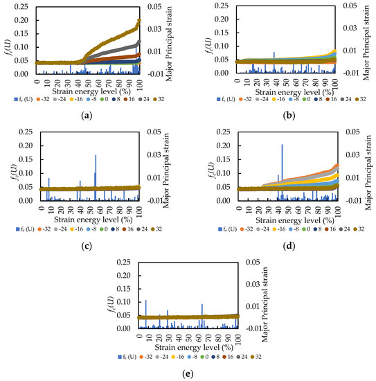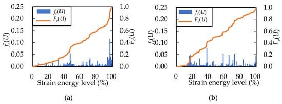 where fe(U) is the AE energy at the strain energy level U (%), dEAE is AE energy per unit strain energy level U and EAE is the total number of AE energy. The increment of strain energy level dU is set to 0.5 N·m.