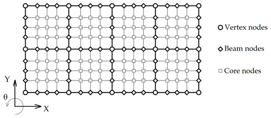 Equation (12) also applies to floor FE models in which floor cells and boundary beams are discretized in finite elements with smaller dimensions (Figure 6) in order to enforce the displacement compatibility.