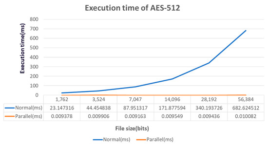 Execution time of normal AES-512 and parallel AES-512.