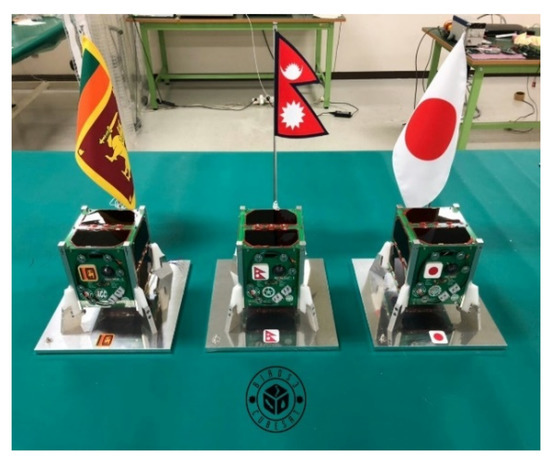 - Chamika, W.D.; Cho, M.; Maeda, G.; Kim, S.; Masui, H.; Yamauchi, T.; Panawennage, S.; Shrestha, S.B. BIRDS-3 Satellite Project Including the First Satellites of Sri Lanka and Nepal. In Proceedings of the 70th International Astronautical Congress, Washington, DC, USA, 21–25 October 2019. [Google Scholar]
