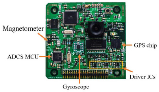 The BIRDS-3 CubeSats had four missions, namely the Imaging Mission (CAM), the LoRa Demonstration Mission (LDM), the Attitude Determination and Control System (ADCS), and the Software Configurable Backplane Mission (BPB):BIRDS-3 FM CPLD. The BIRDS-3 CubeSats had two mission boards named Mission Board 1 and Mission Board 2. ADCS and CAM were installed on Mission Board 2. BIRDS-3 satellites have three-axis magnetic torquers for ADCS and were implemented in printed circuit boards in order to save space. The magnetometer was installed in Mission Board 2 in the ADCS section. Figure 2 shows the location of Mission Board 2 (ADCS mission board), and Figure 3 shows the location of the magnetometer. The MMC5883MA magnetometer was used in BIRDS-3 CubeSats.