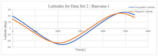Magnetic Latitude and Geographic Latitude for Data Set 2 of Raavana-1.