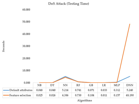 - A comprehensive evaluation of state-of-the-art ML-based methodologies for anomaly-based intrusion detection systems in the IoT was conducted. Notably, when applying ML algorithms such as RF, DT, NB, MLP, ANN, LR, GB, and DNN to datasets without irrelevant attributes, significant reductions in training time were achieved. The evaluation was based on metrics such as precision, recall, F1 score, training time, and testing time, which are indicative of prediction accuracy.