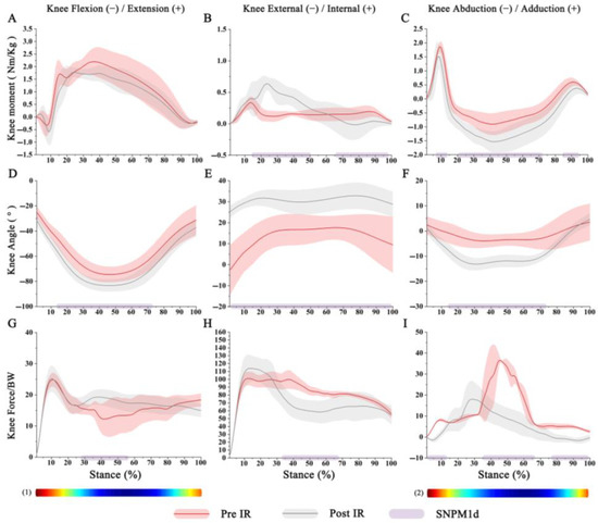 3.2. The One-Dimensional Statistical Nonparametric Mapping (SNPM1d) Comparison Results of Kinematics and Kinetics