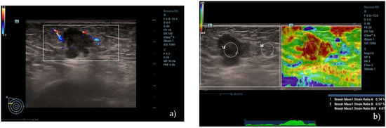 Newly established US and elastography techniques have been studied as an additional method to analyze tissue stiffness in order to improve US examination specificity in the characterization of focal breast masses [8,9,10]. The European Federation of Ultrasound in Medicine and Biology (EFSUMB) and the World Federation of Ultrasound in Medicine and Biology (WFUMB) described US elastography and published their guidelines about physical principles, clinical indications, and limitations in several fields, including breast imaging [10]. Strain elastography (SE) and shear wave elastography (SWE) are the two main methods used in breast imaging.