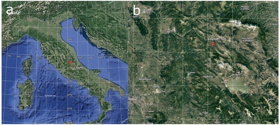 (a) Localization of San Panfilo church in Tornimparte in central Italy and (b) in Abruzzo region.