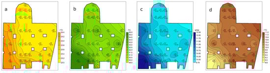 The analysis of intensive monitoring data was carried out considering the horizontal fields of micrometeorological parameters at 1.2 m and 2.0 m from the floor (Section 3.1.1) and the vertical profiles measured in the apse (Section 3.1.2).