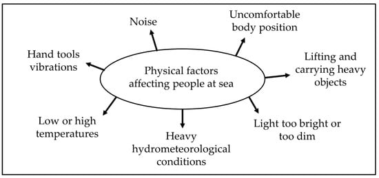 Physical factors that affect a person during work on a ship. Source: own study based on [61].