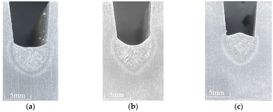 The macrograph of the weld bead transections for a single layer with optimal parameters in flat, vertical, and overhead positions are presented in Figure 12a,b and c, respectively. The Weld pool is uniformly solidified in the weld groove, and the surface of the weld bead is flat in each welding position.