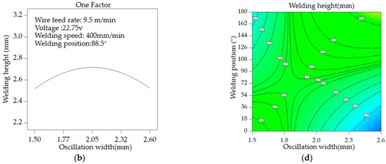Effect of (a) Welding speed, (b) Oscillation width, and (c,d) welding position and Oscillation width on welding height.