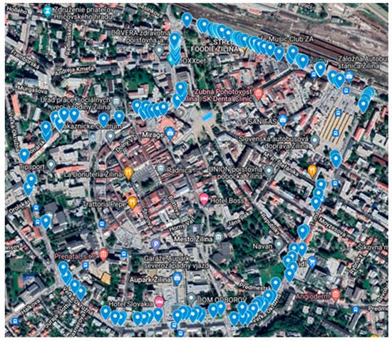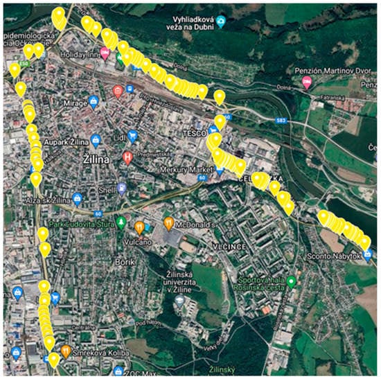 The first step consists of the identification of routes of the selected city, which is the city of Žilina. Identifying the routes of the Slovakian city of Žilina, we employed Google Maps to distinguish the external and internal circuits. Our subsequent task was to assess the density of outdoor advertisements by personally traversing the predetermined sections of the outer and inner circuits. Our analysis of the situation in Žilina allowed us to determine the prevalence of outdoor advertisements.