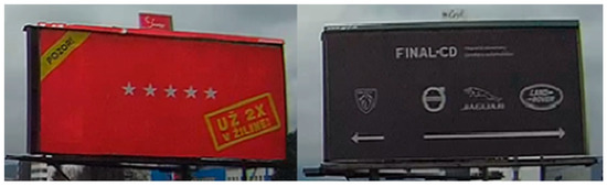 The outer circuit consists of the following streets (Figure 3): Košická–Na Horevaží–Ľavobrežná–Estakáda–Rajecká. This circuit had 72 large-format advertisements, of which 55 were billboards, 16 were bigboards, and 1 was a megaboard.