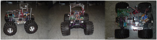 - Shahzad, A.; Roth, H. Bilateral telecontrol of AutoMerlin mobile robot. In Proceedings of the 9th IEEE International Conference on Open-Source Systems and Technologies, Lahore, Pakistan, 17–19 December 2015; IEEE: New York, NY, USA, 2015; pp. 179–191. [Google Scholar]